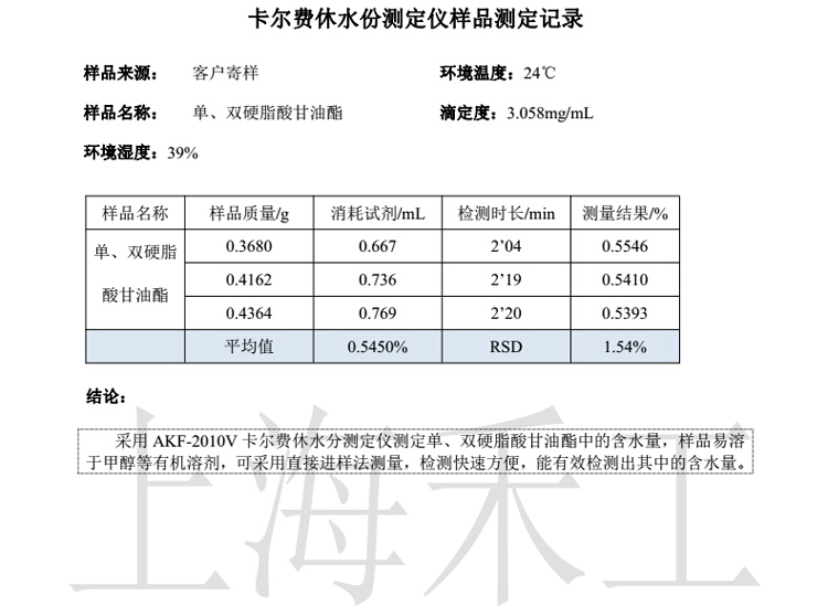 單、雙硬脂酸甘油酯水分含量檢測(cè)
