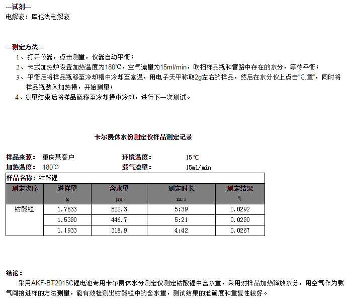 測定方式: 卡爾費(fèi)休庫侖法滴定+卡氏頂空進(jìn)樣器