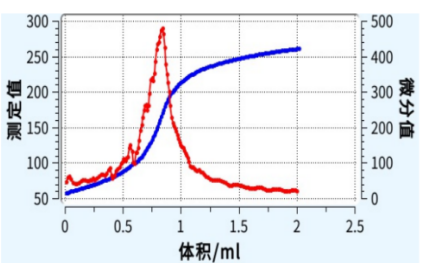 在實(shí)際操作過程中,首先將一定量的電解液樣品置于燒杯中,充分?jǐn)嚢韬蟛迦腚姌O和滴定頭。通過設(shè)置儀器參數(shù),如最小滴定體積25μL,最大滴定體積50μL,攪拌速度設(shè)定為200,每滴間隔1000ms,采用微分判定終點(diǎn)模式,微分設(shè)置為150,確保了滴定過程的精密控制。